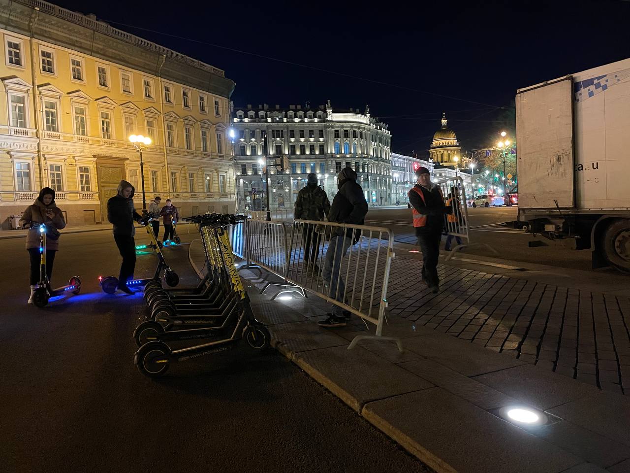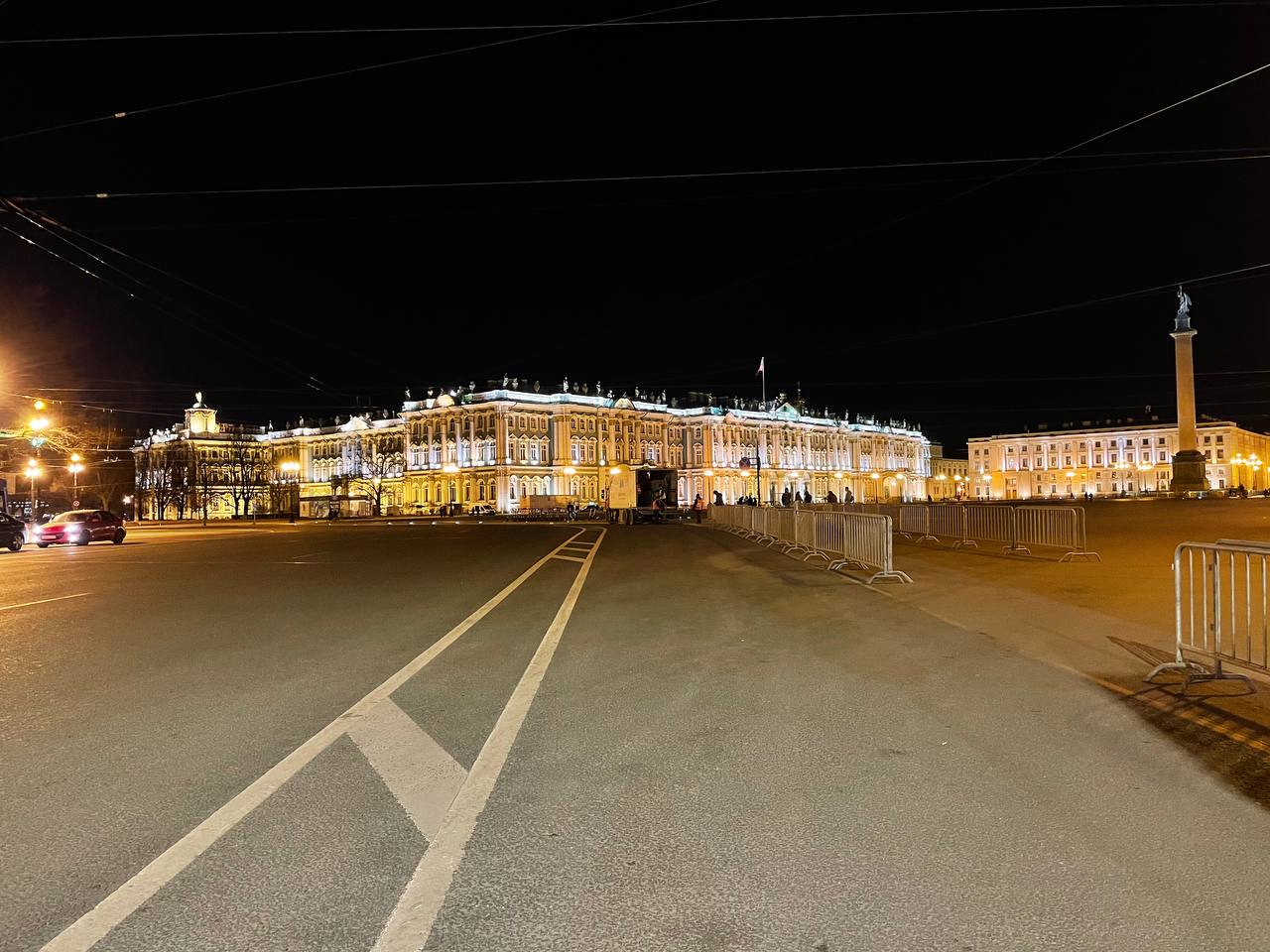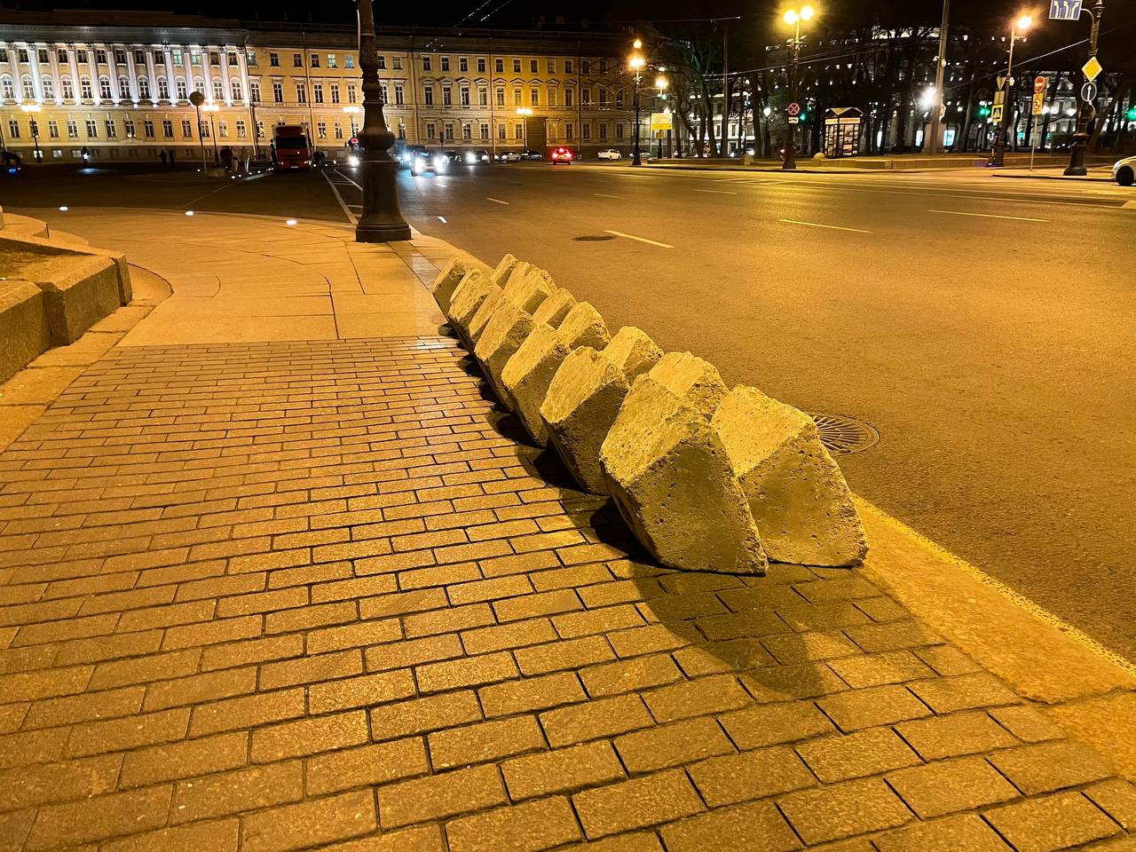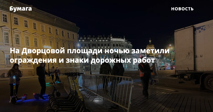 На Дворцовой в ночь на 20 апреля стали выставлять ограждения. Рядом с площадью также заметили сваленные в кучу знаки дорожных работ и цементные блоки для их установки, сообщает корреспондент «Бумаги» Елизавета Ивантей.