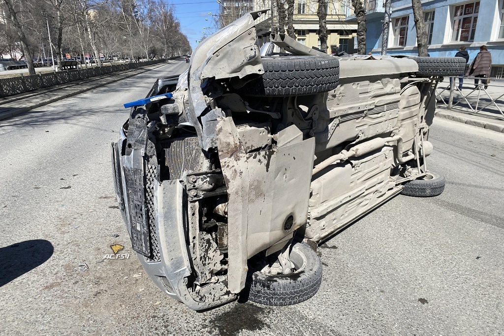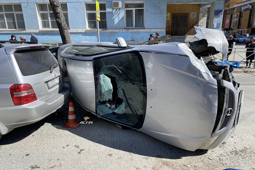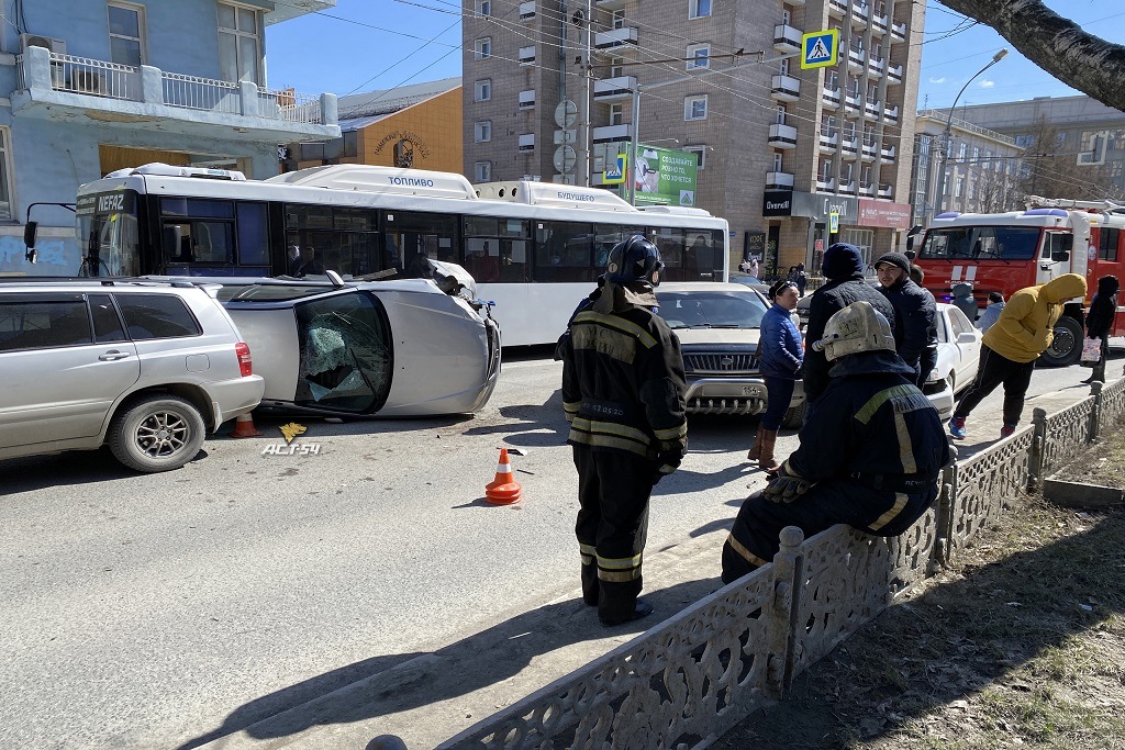 Массовое ДТП произошло в центре Новосибирска. Столкнулись пять автомобилей. Один из них завалился на бок. Пострадавших нет.
