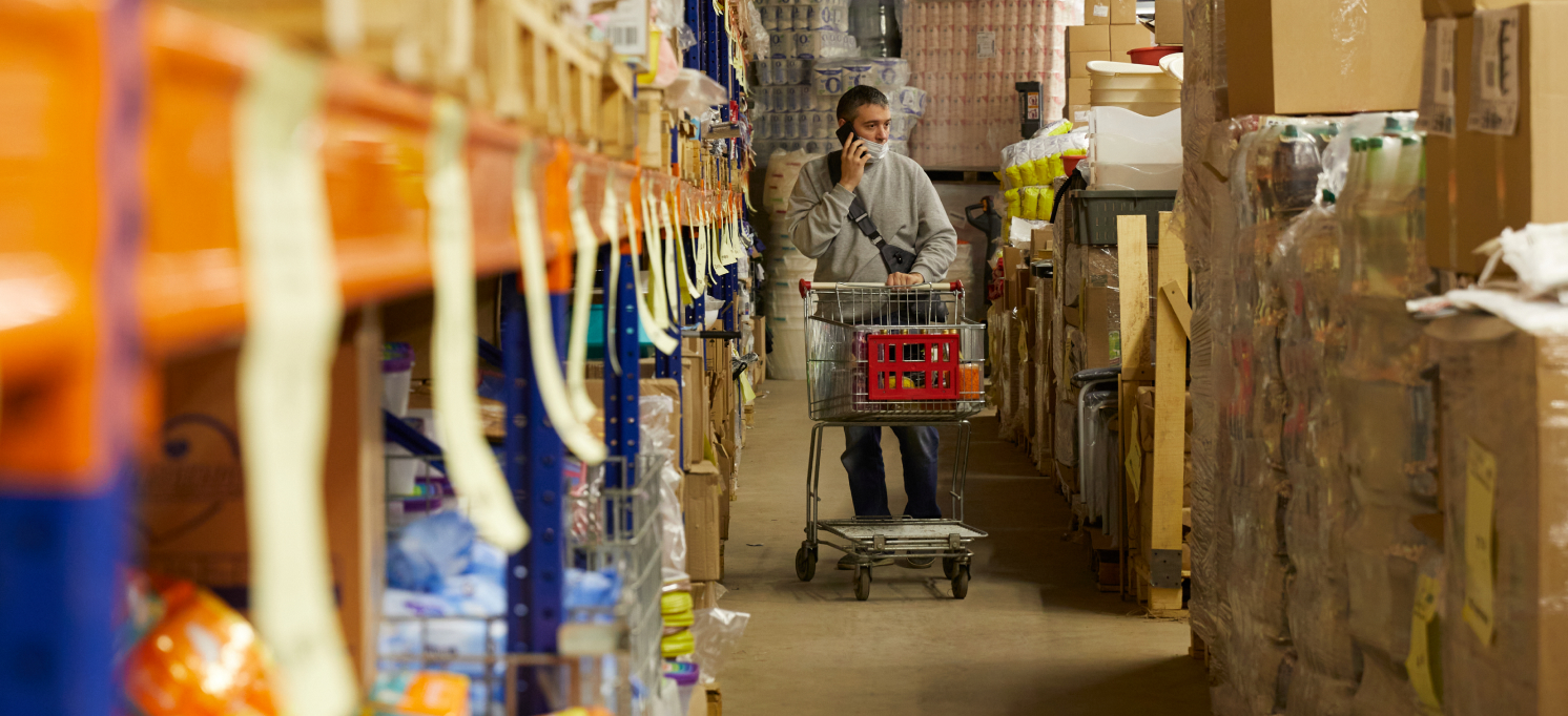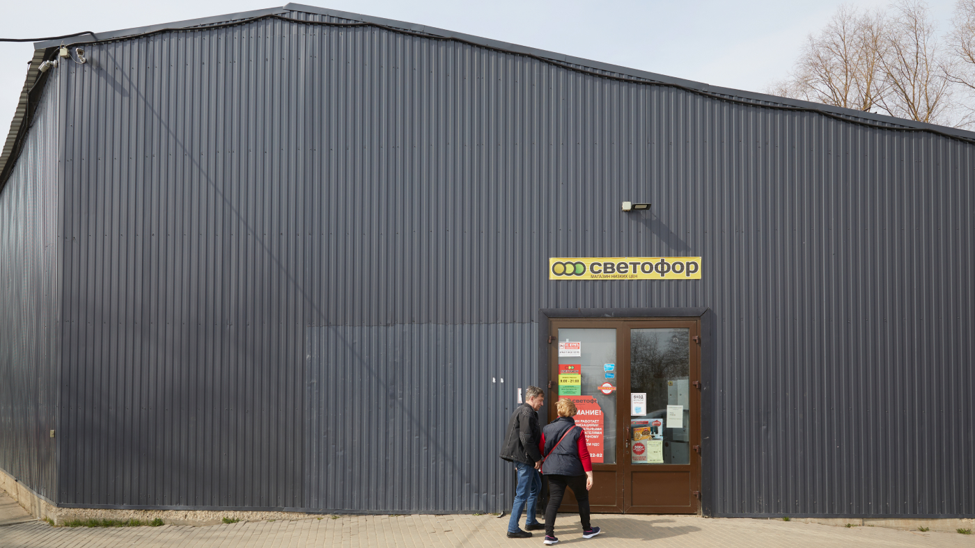 В «Светофорах», которые посетили корреспонденты The Bell, не было даже минимального оформления. Паллеты в несколько ярусов вдоль голых стен — похоже на склад самообслуживания IKEA.