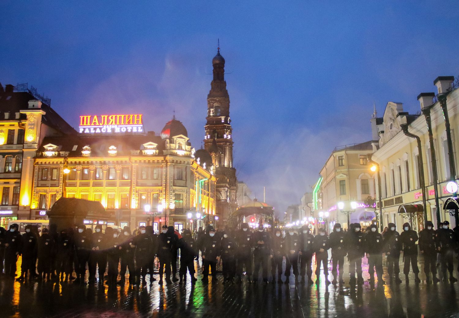 Артем Дергунов / ТАСС Силовики на улице Баумана.Артем Дергунов / ТАСС Казань оказалась среди лидеров по числу задержанных — не менее 49 человек.