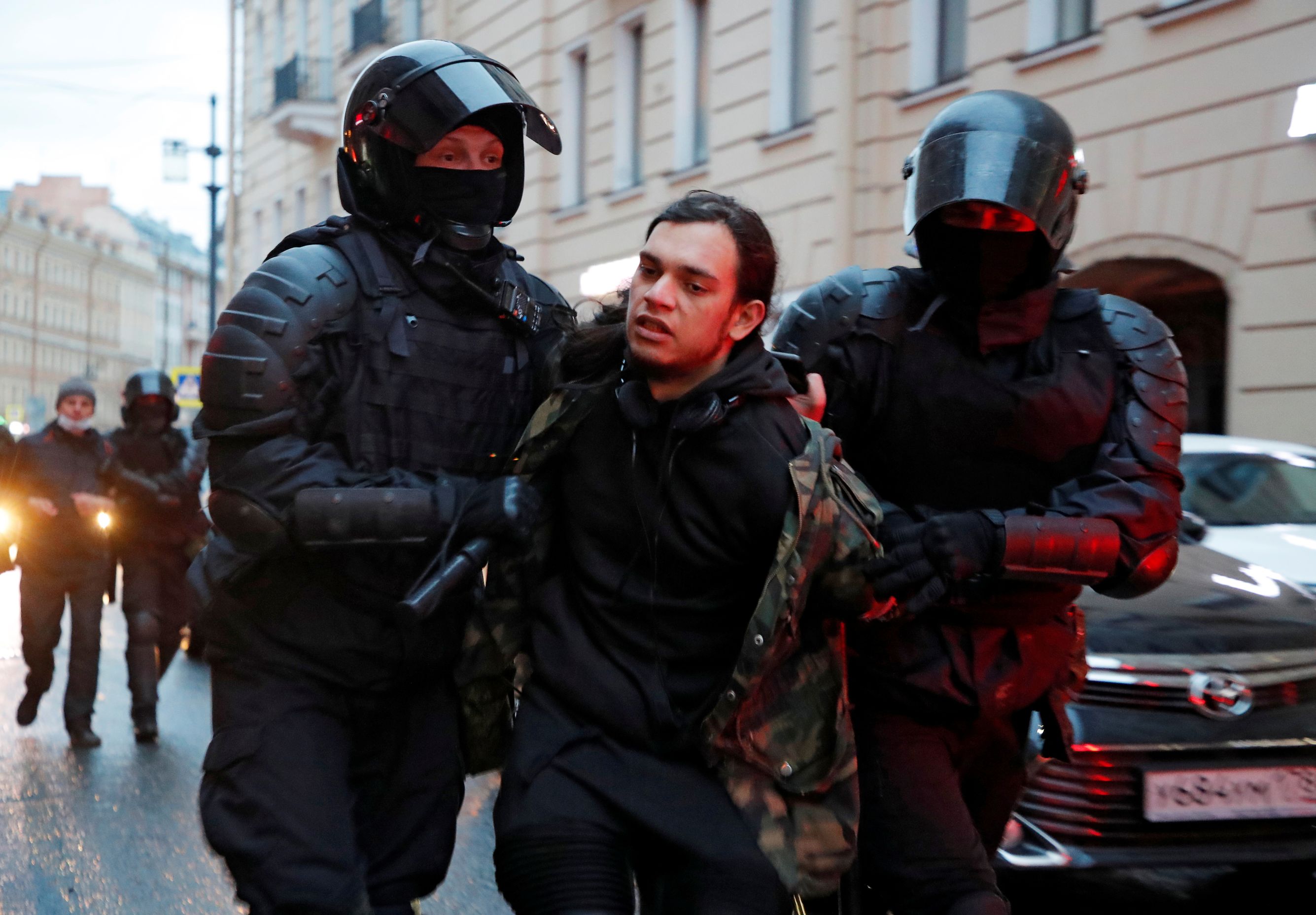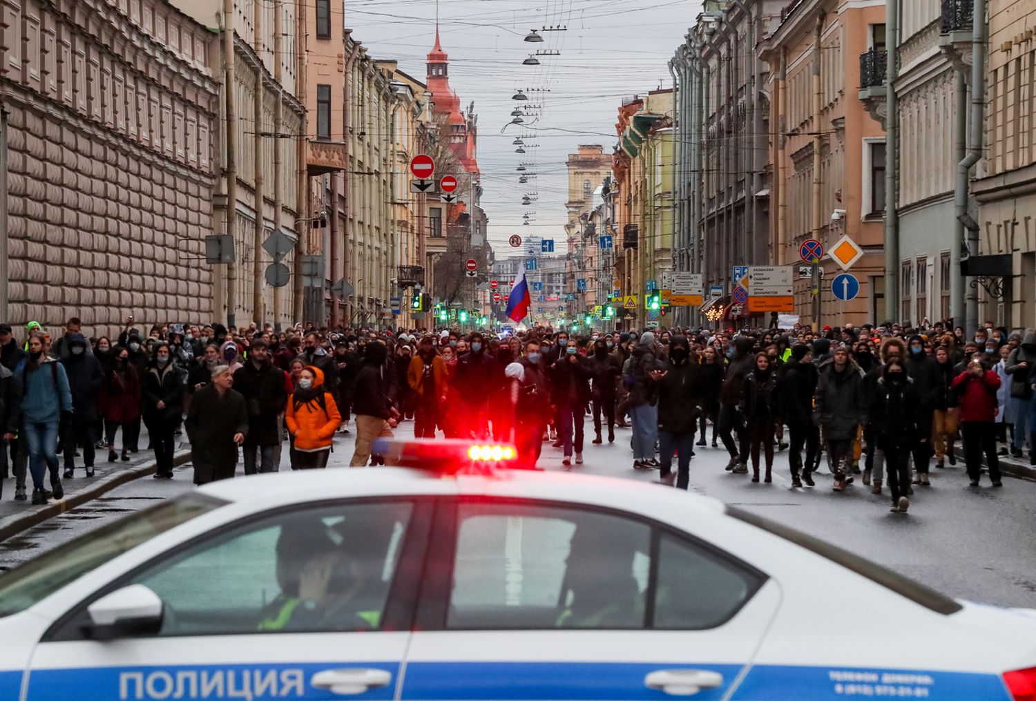 Антон Ваганов / Reuters / Scanpix / LETA В Санкт-Петербурге полицейские при задержаниях активно использовали электрошокеры (такое бывало и раньше).Антон Ваганов / Reuters / Scanpix / LETA Протестующие с российским флагом идут в центр города.Антон Ваганов / Reuters / Scanpix / LETA В Петербурге задержали больше 40 человек.Петр Ковалев / ТАСС / Vida Press Полиция перекрывает путь протестующим.