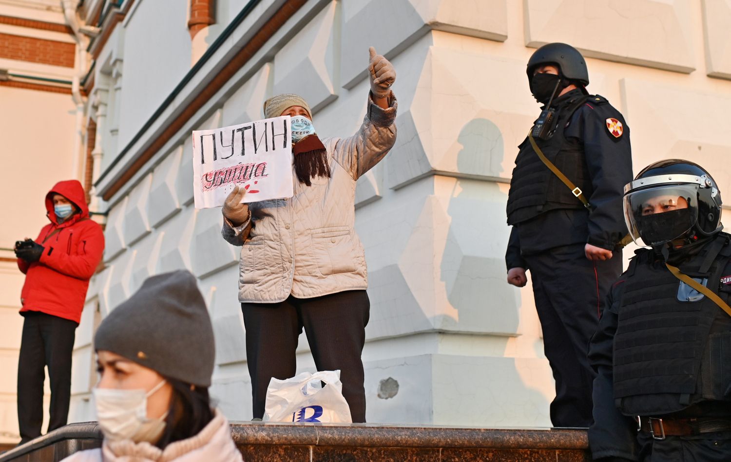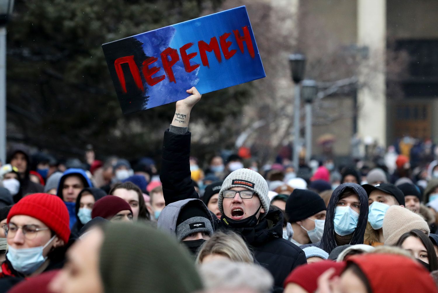 Алексей Мальгавко / Reuters / Scanpix / LETA В Омске на акцию в поддержку Навального вышли около тысячи человек.Алексей Мальгавко / Reuters / Scanpix / LETA Участница акции цитирует президента США Джо Байдена.Алексей Мальгавко / Reuters / Scanpix / LETA В Омске задержали трех протестующих.