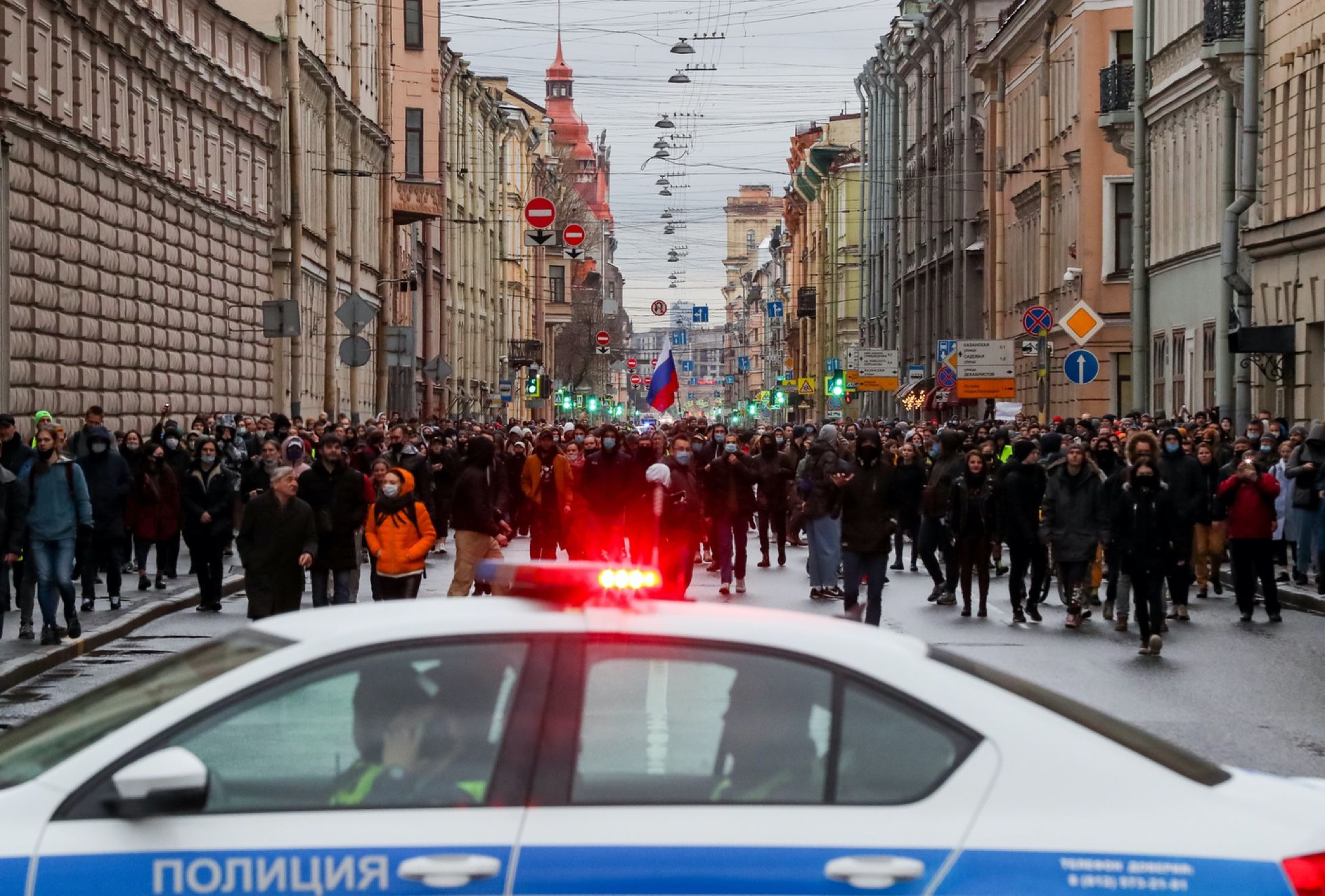 Шествие в поддержку Навального в центре Петербурга. Фотография