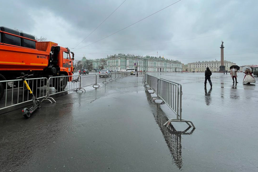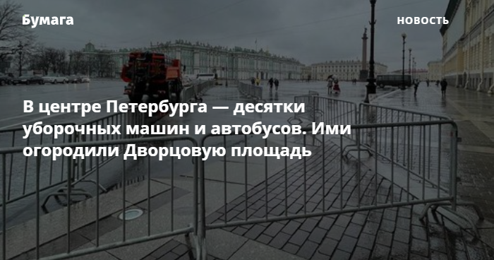 Из автобусов и уборочной техники также создали ограждение, закрывающее доступ на Дворцовую площадь с Дворцового проезда.
