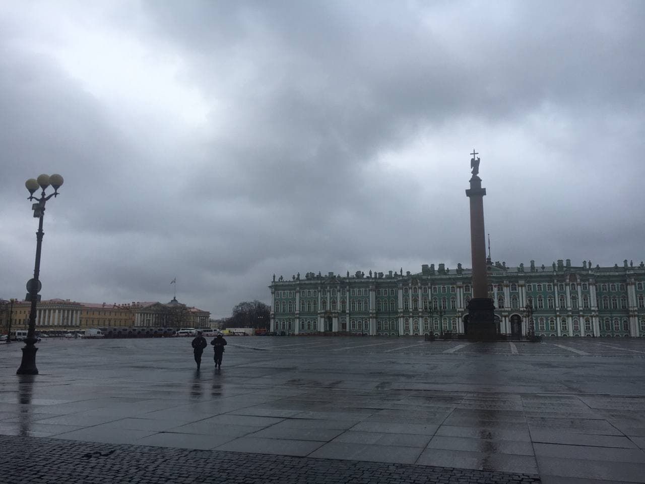 На Дворцовую площадь вечером 21 апреля не пускают людей. Об этом сообщают очевидцы и корреспондент «Бумаги» с места событий. Судя по веб-камерам Эрмитажа, на площади к 18:30 нет почти никого.
