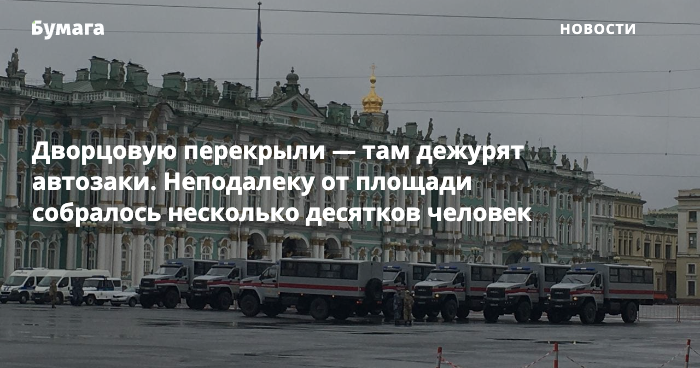 У Дворцовой и вдоль Невского проспекта выставили ограждения. На площади дежурят силовики и стоят автозаки.