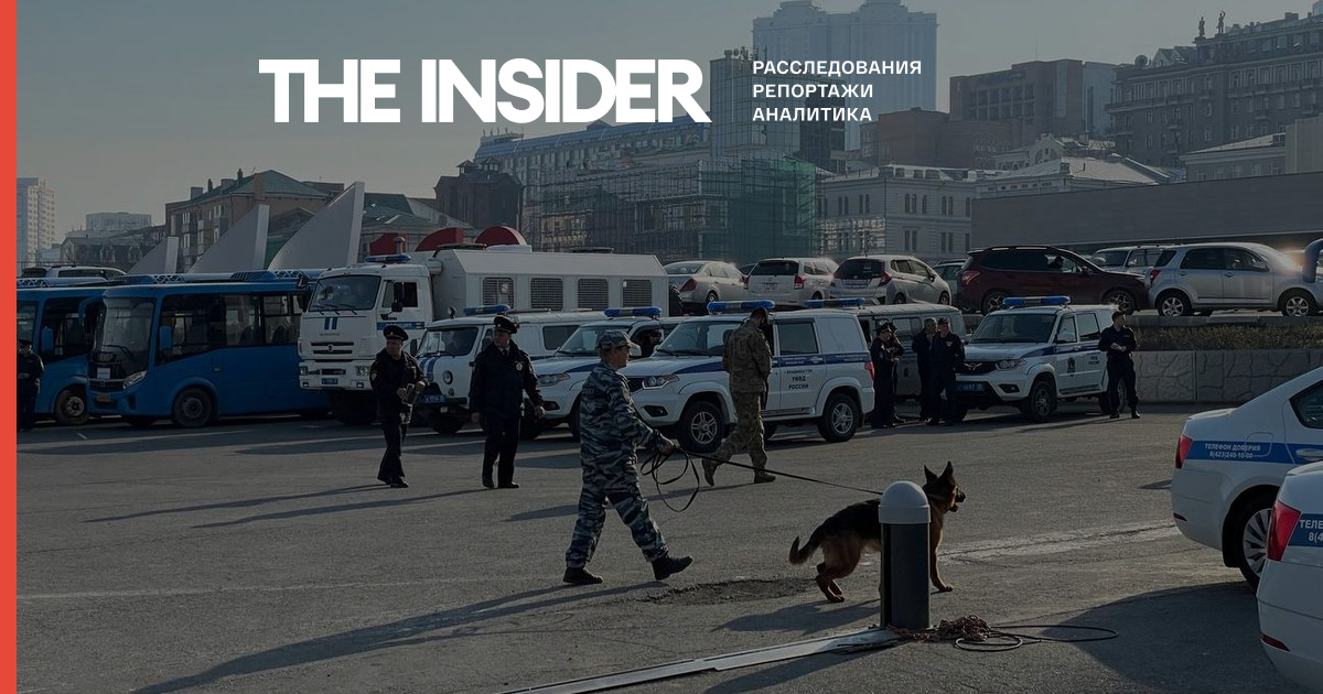 Тем временем во Владивостоке перед началом митинга в центр города стянули спецтехнику и силовиков со служебными собаками.