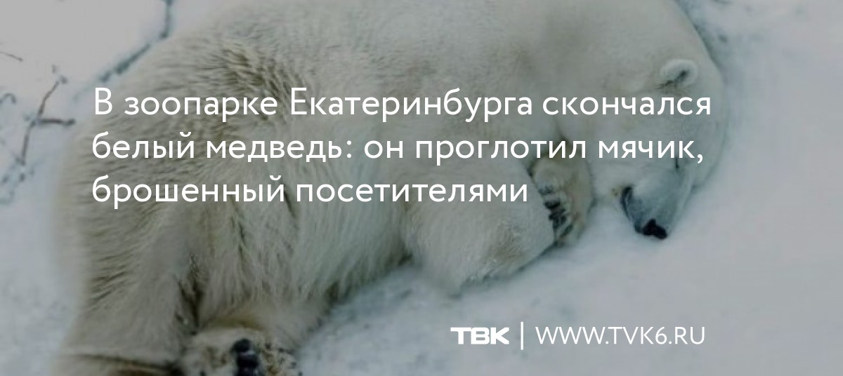 В зоопарке Екатеринбурга скончался белый медведь: он проглотил мячик, брошенный посетителями