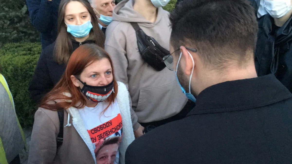 После непродолжительной перепалки мундеп Александр Бородавченко попытался объяснить участнице акции Анне Батоновой, которая была в футболке с надписью «Свободу Павлу Зеленскому», что его посадили не за твиты, которые были написаны после самосожжения журналистки Ирины Славиной, а за призывы к свержению власти. После непродолжительной перепалки он ретировался, а протестующие проскандировали: «Позор».
