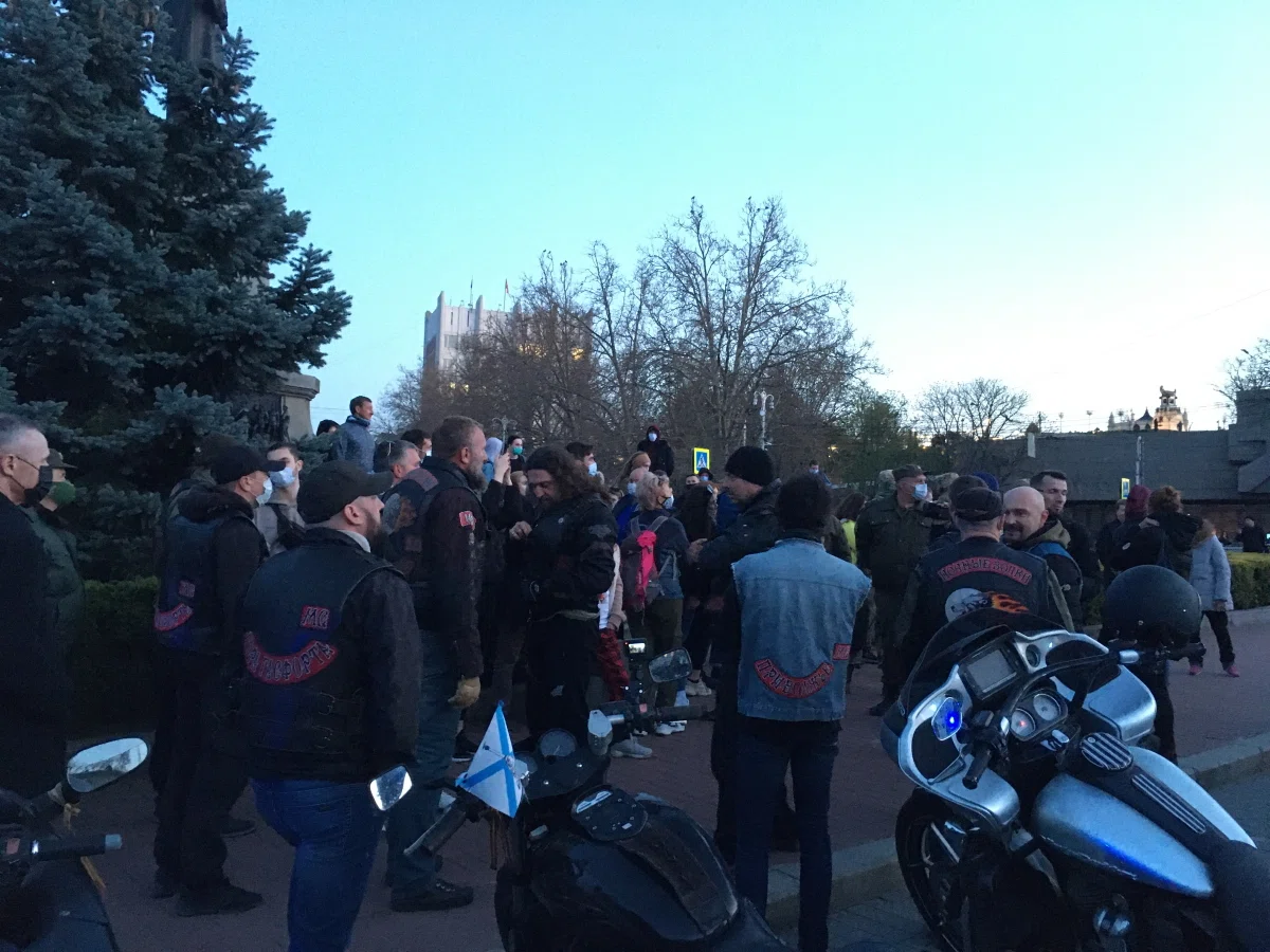 Как только стемнело, к акции присоединились и байкеры из мотоклуба «Ночные волки» во главе с «Хирургом» (Александром Залдостановым). Конечно, они прибыли не требовать допустить врачей к Алексею Навальному, а заниматься «патриотическим воспитанием» протестующих.