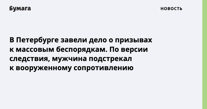 В Петербурге завели уголовное дело о призывах к массовым беспорядкам