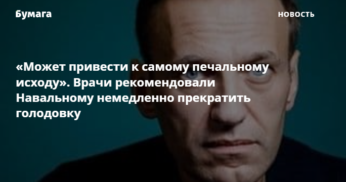 «Мы, как лечащие врачи, обращаемся к Алексею Навальному и просим немедленно прекратить голодовку для сохранения жизни и здоровья, и считаем факт допуска к нему гражданских врачей, проведение объективных исследований и консилиумов достаточным для этого», — говорится в обращении врачей. Они также настаивают на переводе и госпитализации Навального в многопрофильный стационар Москвы.