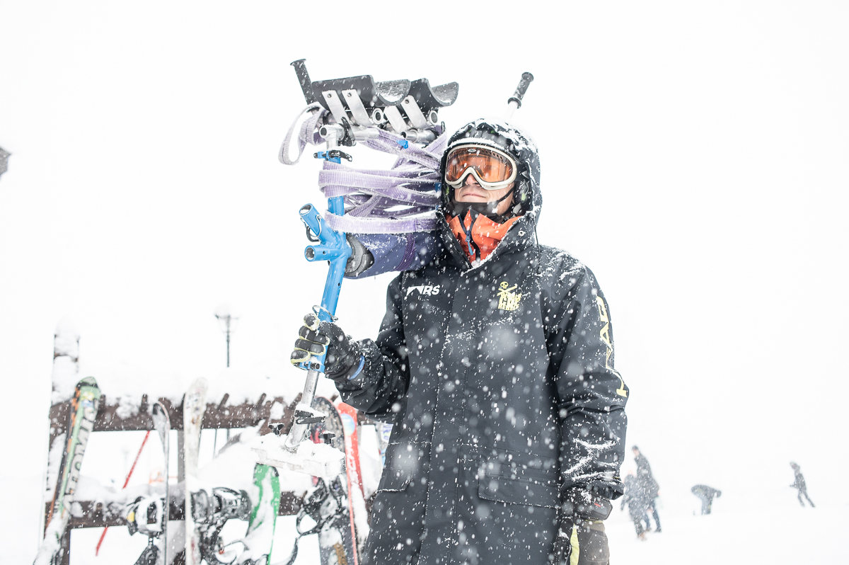 Инструктор Артем со слайдером на плечеФото: Федор Лавров Для детей с нарушениями развития используется специальное приспособление для опоры — слайдер. Это металлическая конструкция, к которой крепится еще одна пара лыж. Ребенок быстро учится управлять слайдером и начинает сам поворачивать, куда хочет. По словам Артема, дети с ДЦП не привыкли к тому, что они свободно перемещаются: «А тут они едут. У ребенка мелькает мир, как в калейдоскопе. Для них невообразимо странное и новое ощущение».