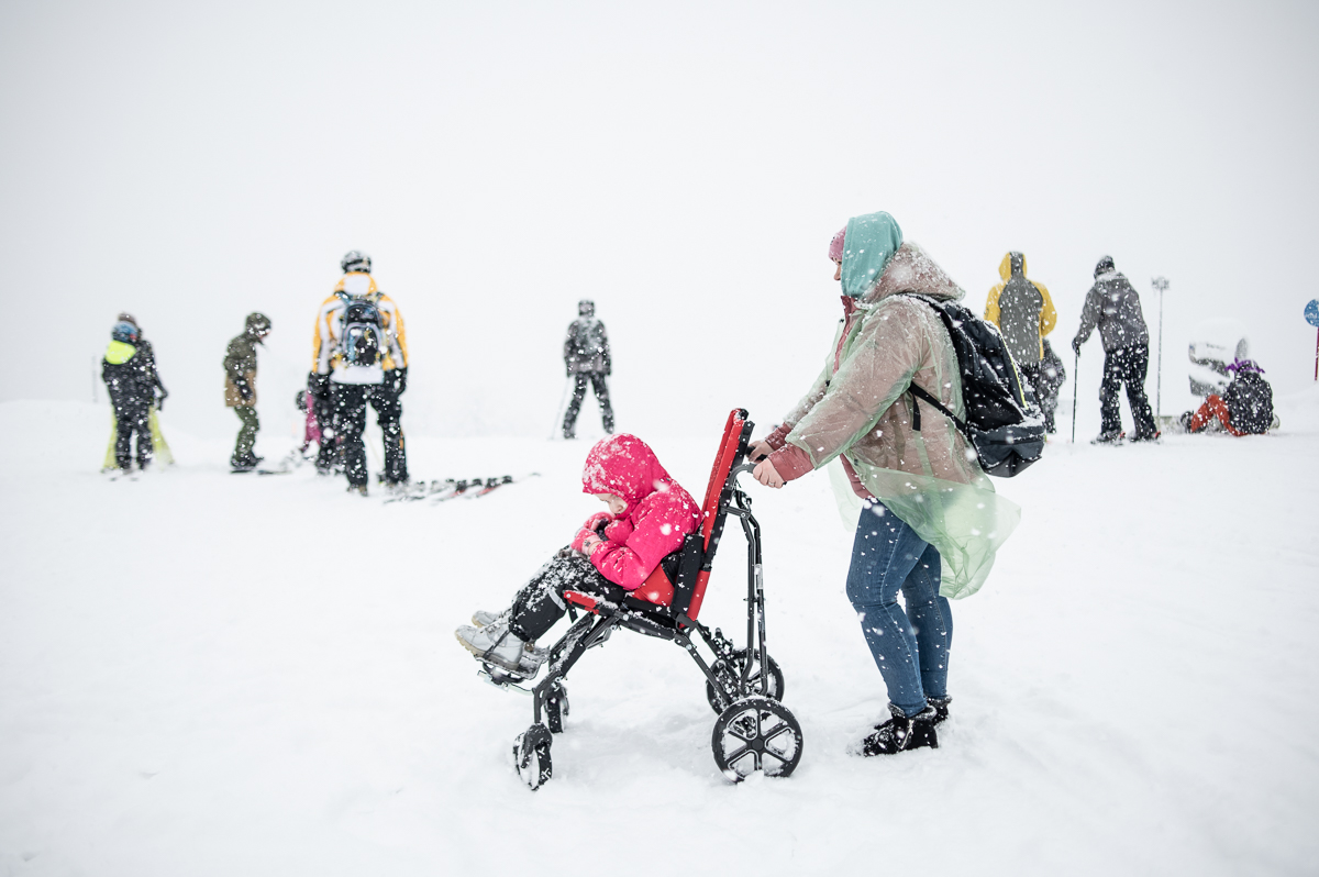Однажды на горнолыжном курорте Сочи фотограф Федор Лавров встретил девочку в инвалидной коляске. Шесть-семь лет с виду, на ногах были какие-то приспособления для поддержки. Ее вытащили из коляски и стали надевать горнолыжные ботинки. Со стороны это выглядело очень странно — по всем признакам ходить она не могла или ходила, но очень плохо