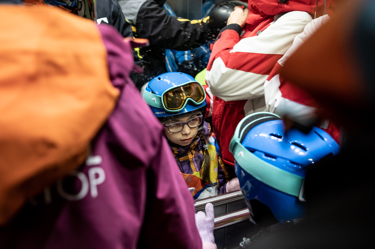 Есеня в лифте перед началом занятияФото: Федор Лавров Лечебная физкультура тоже не всегда приносит радость. Поэтому занятия на лыжах физически и эмоционально более приятные.