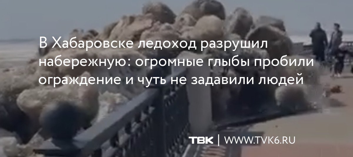 В Хабаровске ледоход разрушил набережную: огромные глыбы пробили ограждение и чуть не задавили людей