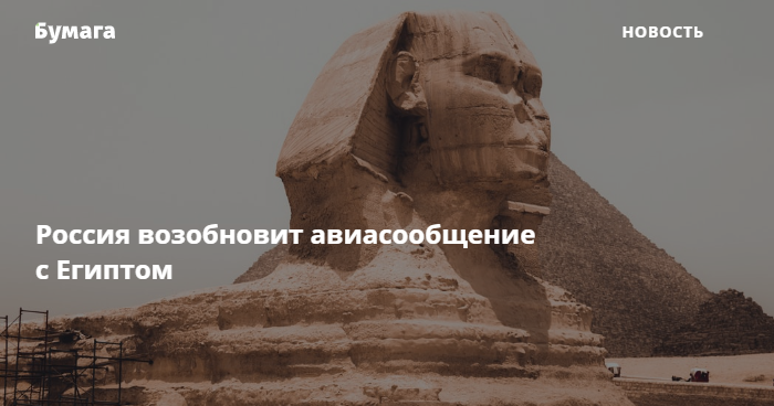Речь идет о полном возобновлении авиасообщения, в том числе с аэропортами Хургады и Шарм-эль-Шейха. Соглашение об этом было достигнуто во время телефонного разговора между президентом Египта Абдель Фаттаха ас-Сиси с президентом России Владимиром Путиным.