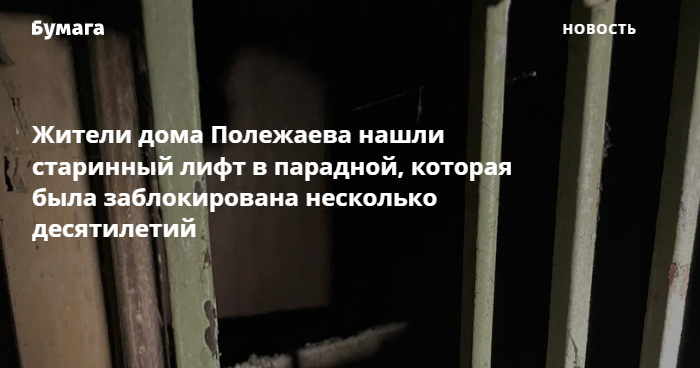 Жители дома Полежаева обнаружили старинный лифт в парадной, которая была закрыта десятилетиями. Об этом они рассказали в группе «Центральный район за комфортную среду обитания».