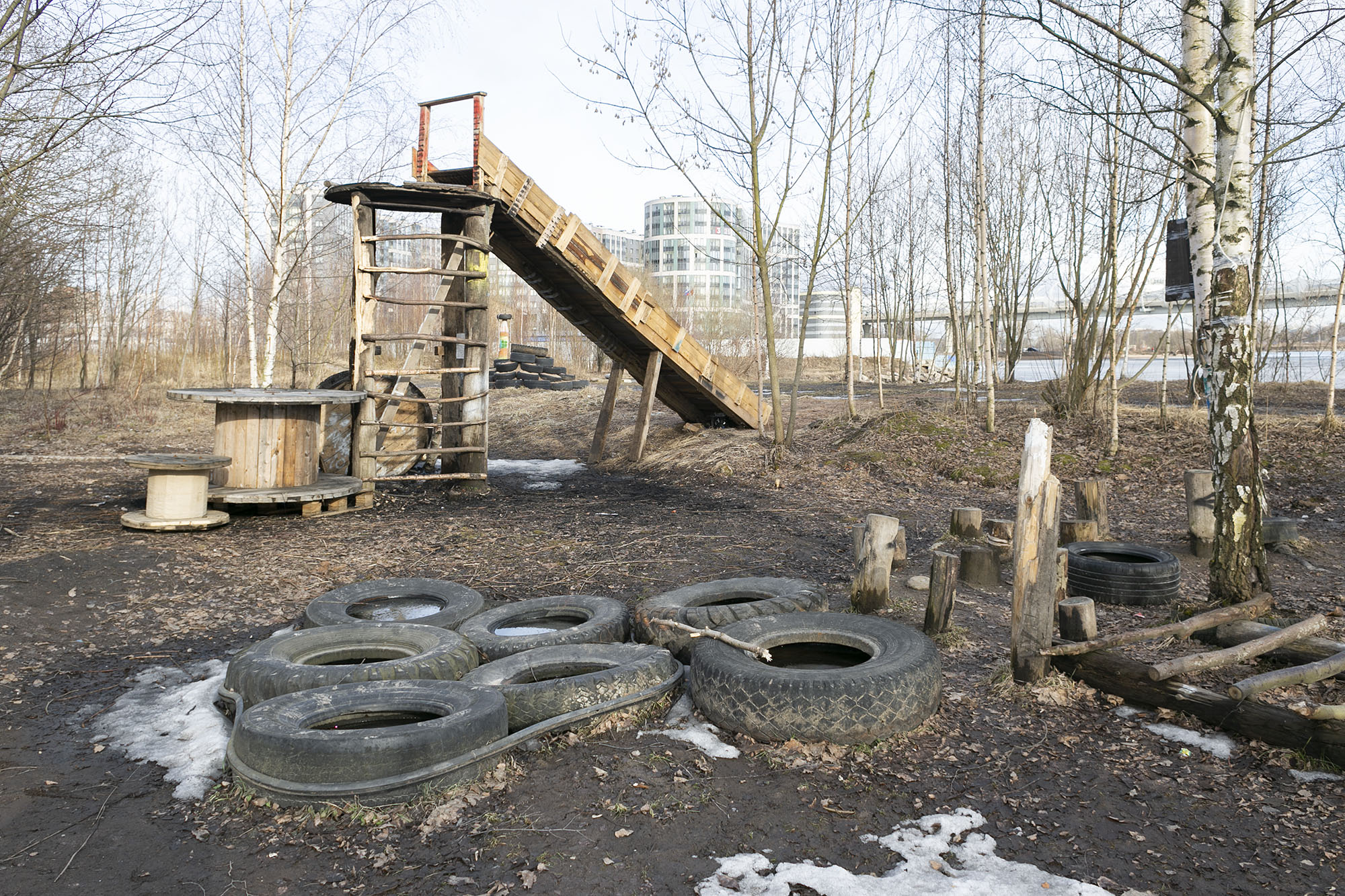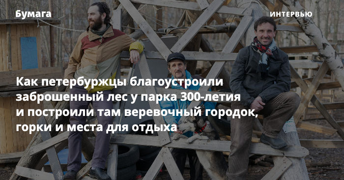 Как петербуржцы благоустроили заброшенный лес у парка 300-летия и построили там веревочный городок, горки и места для отдыха