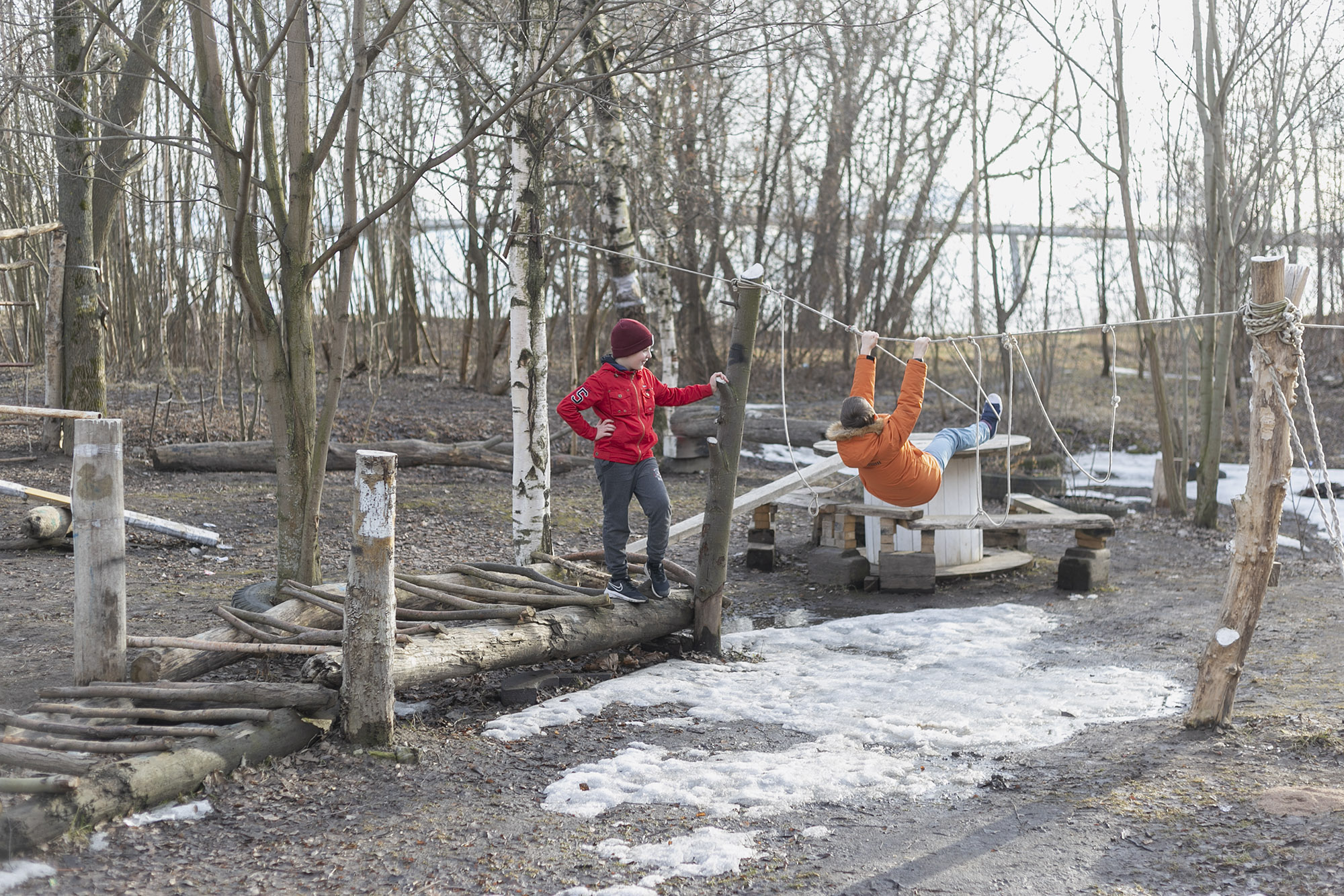 Получилась довольно длинная веревочная трасса. Но 7 января 2021 года кто-то пришел сюда, обрезал веревки на деревьях, облил всё бензином и поджег. Честно говоря, даже не узнавал номер дела в полиции — его завели автоматически, так как это был поджог. Думаю, они всё равно никого не найдут.