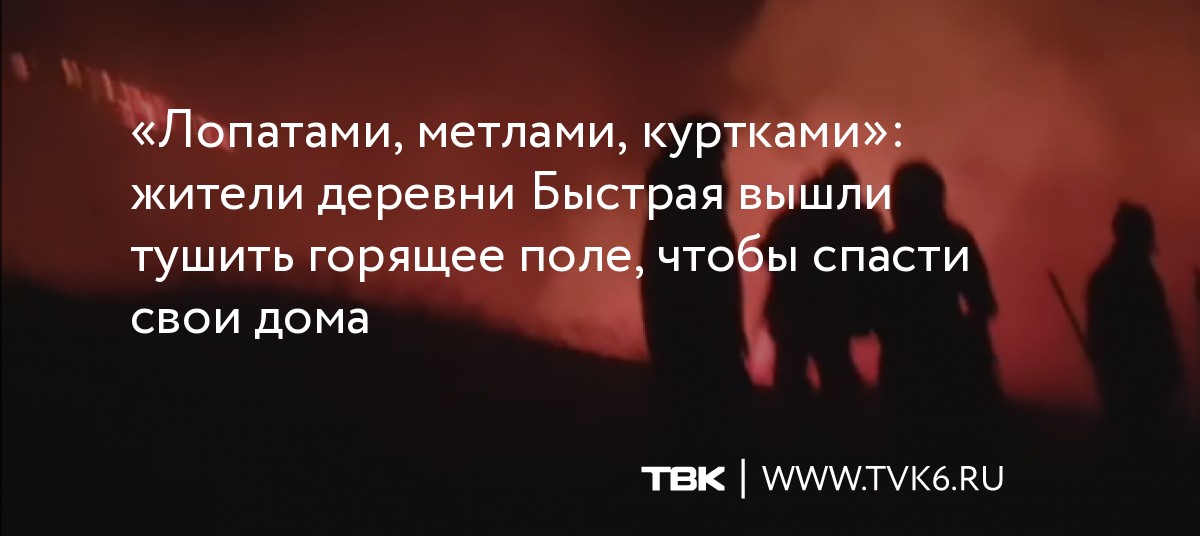 «Лопатами, метлами, куртками»: жители деревни Быстрая вышли тушить горящее поле, чтобы спасти свои дома