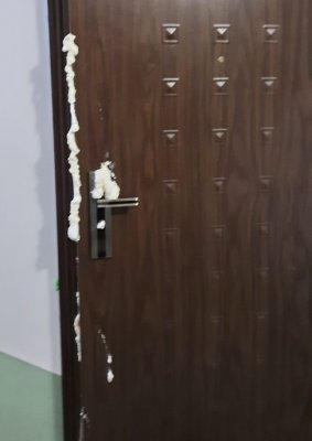 Оказалось, что снаружи проемы двери и замок залиты монтажной пеной. Активистка вызвала полицейских, которые составили протокол по факту инцидента.