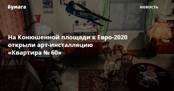 На Конюшенной площади к Евро-2020 открыли арт-инсталляцию «Квартира № 60». Она посвящена победе сборной СССР на первом Кубке Европы, сообщает вице-губернатор Петербурга Борис Пиотровский.