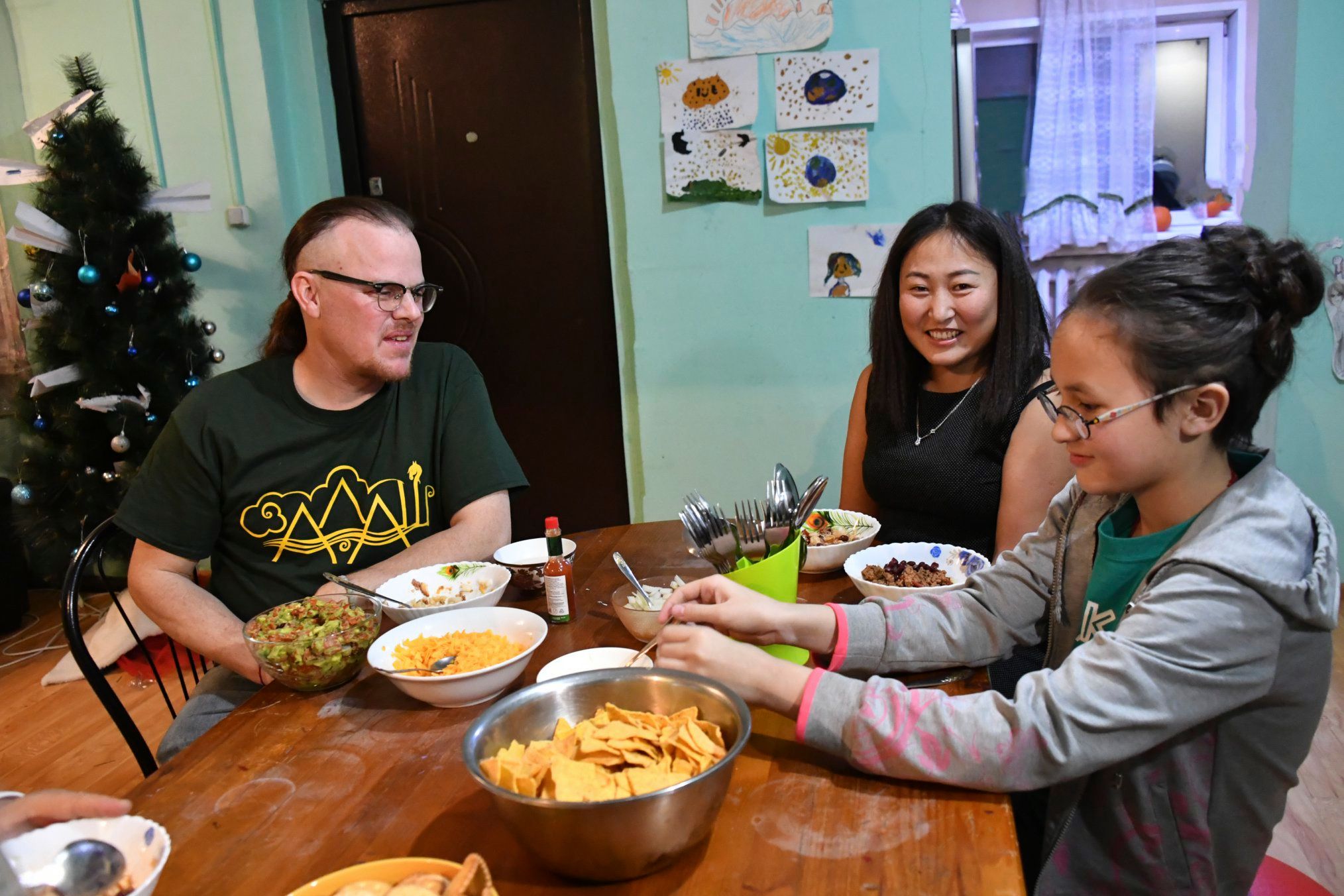– В Туве и России я всегда сталкивался только с уважительным к себе отношением. Я горжусь, что, приехав сюда, я изменил некоторые стереотипы об американцах. Пропаганда? Я вообще не смотрю телевизор, поэтому я не знаю, о чем говорит российское телевидение. Но если там говорят, что Америка – это враг, то мне очень жаль. Меня тут иногда спрашивают здесь (например, мужики в бане, которые много смотрят телевизор): "Почему Америка такая злая, почему она нас ненавидит?" Когда я приехал, официальные отношения между странами были более теплыми. И когда в Америке говорят плохо о России, мне это тоже не нравится. Хотя в Америке Россия – это далеко не проблема номер один. То есть, если ты включишь телевизор, там не будут постоянно говорить о России. А вообще пропаганда – это плохо, что с той, что с другой стороны. Я здесь не поддерживаю ни ту, ни другую сторону. Я надеюсь, что я лично добротой и уважением, разрушая стереотипы, делаю хотя бы маленький вклад против ненависти, против зависти.