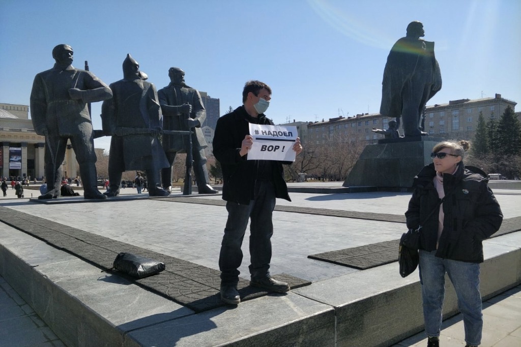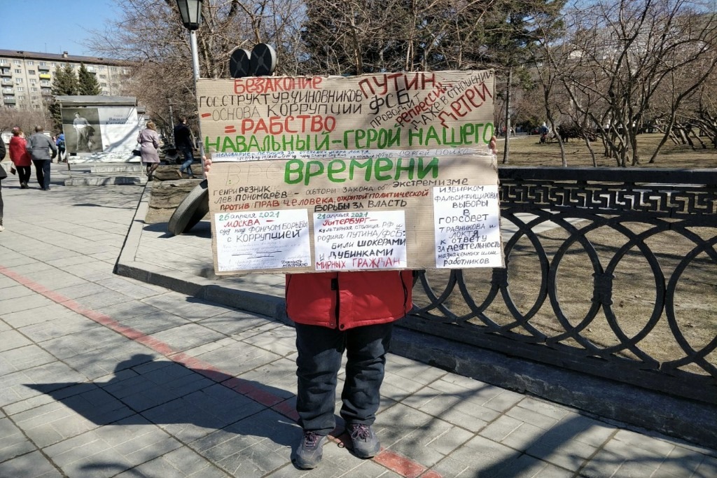 На площади Ленина днем 24 апреля прошли три одиночных пикета одновременно, передает тг-канал «Гражданские репортеры Сибири». Их участники выразили поддержку политику Алексею Навальному и выступили против политических репрессий.