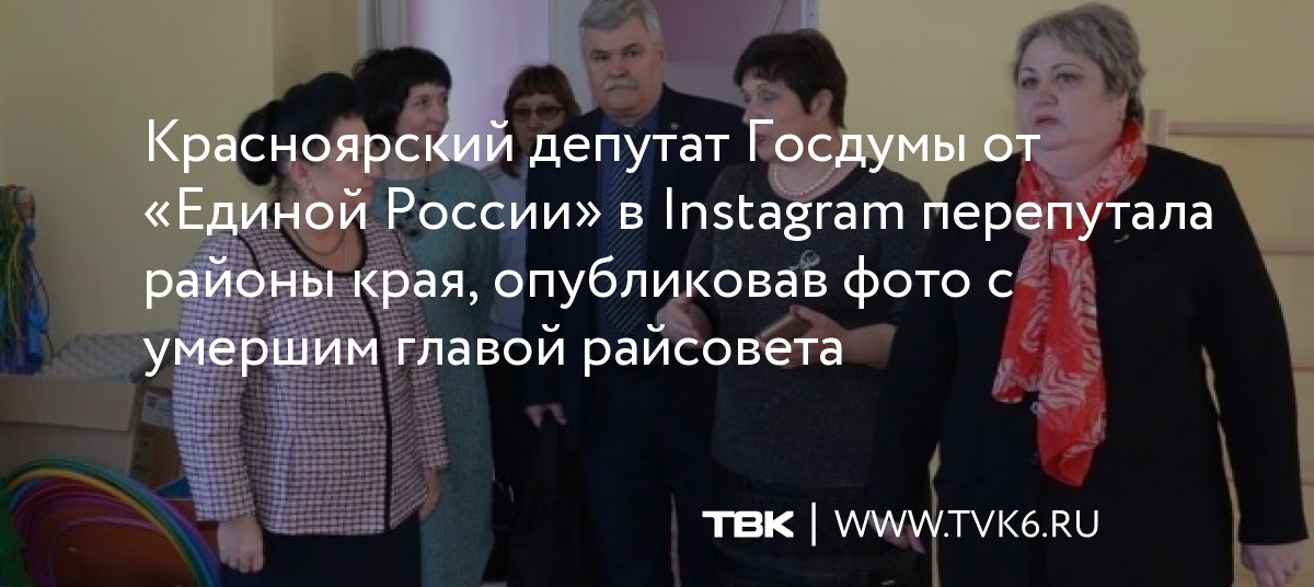 Красноярский депутат Госдумы от «Единой России» в Instagram перепутала районы края, опубликовав фото с умершим главой райсовета