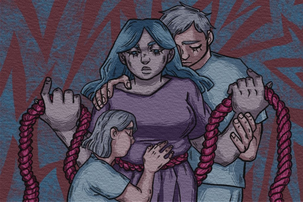 В 15 лет мне диагностировали шизофрению. До этого я четыре года наблюдалась у невролога с расплывчатым диагнозом. Антидепрессанты, которые он мне прописывал, не помогали, поэтому он в конце концов отправил меня к психиатру, который и поставил точный диагноз. Тогда же я начала встречаться с молодым человеком. Он знал о моих ментальных проблемах. Я старалась быть как можно более хорошей и удобной для него, чтобы он меня не бросил. А он ловко манипулировал моими эмоциями, заставляя думать, что я ужасная и недостойна его, и поэтому мне нужно угождать ему и делать все, что он скажет. Он высмеивал все мои увлечения и интересы, любил устраивать сцены и выставлять меня из своей квартиры, если ему что-то не понравилось в нашем разговоре. Однажды он ударил меня по лицу, а потом смеялся, что я после этого не хотела с ним разговаривать. Он склонял меня к сексу, к которому я тогда еще не была готова: «Зачем мне нужна девушка, с которой нельзя спать?». Я была так морально подавлена, что не могла ни в чем ему отказать. С ним же у меня был опыт прерванного полового акта. Ему было плевать на последствия. К счастью, мне повезло не забеременеть. Я не могла уйти от него, так как была твердо уверена, что без него мой мир рухнет. Я видела в будущем союз с этим человеком — брак, дети. Над этим он тоже смеялся, говорил, что из меня никудышная хозяйка. Так продолжалось почти два года. В какой-то момент я поняла, что больше так не могу, и ушла от него.