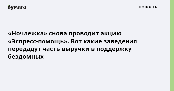 «Ночлежка» с 26 апреля по 2 мая проводит традиционную акцию «Эспресс-помощь» в поддержку бездомных. Об этом сообщается на сайте благотворительного проекта.
