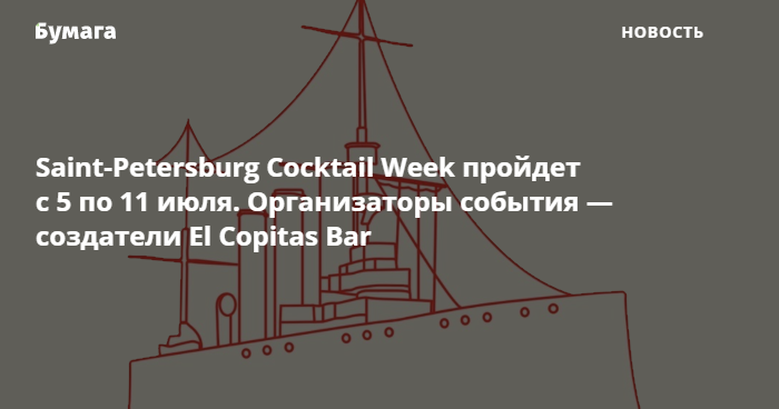 Saint-Petersburg Cocktail Week пройдет с 5 по 11 июля