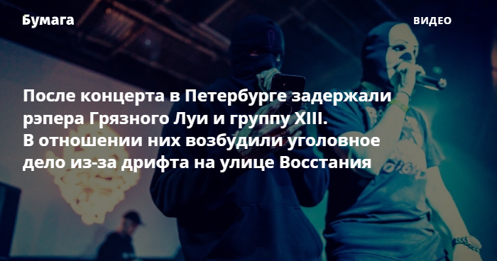 В пресс-службе МВД по Петербургу и Ленобласти «Бумаге» сообщили, что задержание трех рэперов связано с проведением процессуальных действий по уголовному делу о воспрепятствовании движению транспорта (ч. 1 ст. 267 УК). Дело возбудили в отношении них из-за дрифта 13 апреля: тогда водитель спортивного «Ниссана» ездил кругами на участке улицы Восстания, перегородив движение и создав затор, утверждает МВД. При этом его снимали друзья — предположительно, для создания клипа.