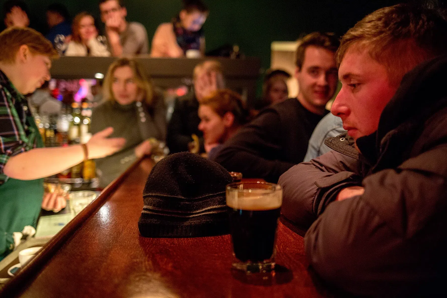 Неподалеку от меня у стойки сидят двое мужчин. Подхожу к ним, знакомлюсь. Алексей и Сергей из Петербурга, но в этом пабе тоже бывают регулярно: каждый раз, когда приезжают в Москву. Приходят именно ради чешского пива. Спрашиваю, как они относятся к тому, что российские власти могут запретить его импорт.