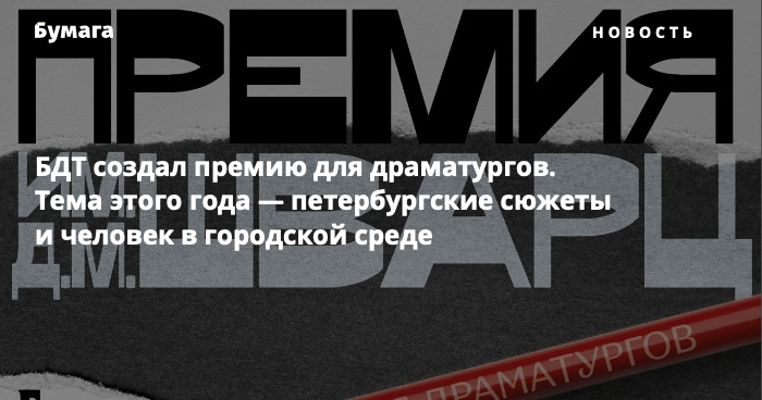 Автор лучшей работы получит денежный приз в размере 300 тысяч рублей, а его пьесу поставят на одной из сцен БДТ. «Цель этого конкурса — практическая: получить для театра современную пьесу», — сообщил художественный руководитель БДТ Андрей Могучий.