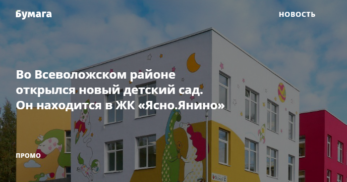 Компания «КВС» построила детский сад на территории ЖК «Ясно.Янино». В нем девять групп: две ясельных и семь для дошкольников. Этого количества достаточно для зачисления 200 детей, 180 уже получили свои направления в сад.