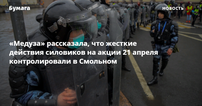 За жесткие действия силовиков на акциях протеста в Петербурге отвечает Смольный. Об этом пишет «Медуза» со ссылкой на несколько источников.