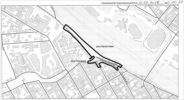 Через Смоленку в створе 4-й и 5-й линий предлагают проложить легкий пешеходный мост. Так к парку появится проход со стороны острова Декабристов и до пространства будет удобнее добираться от станции метро «Спортивная».