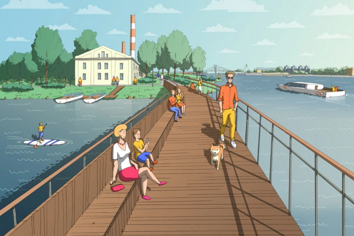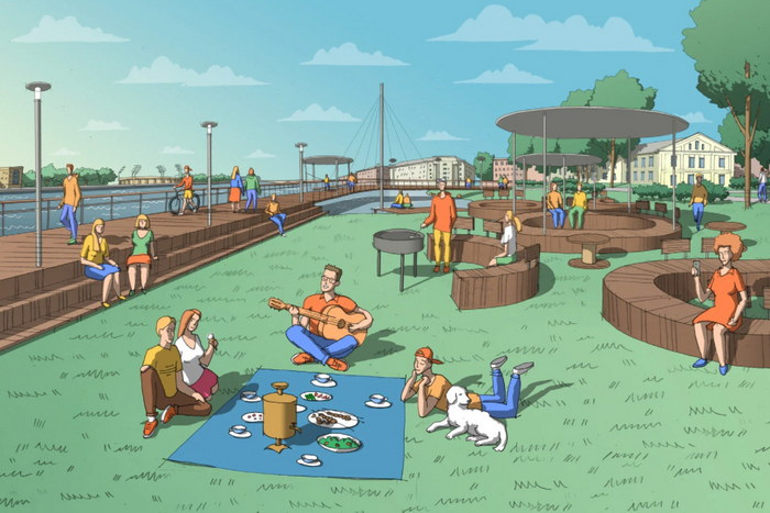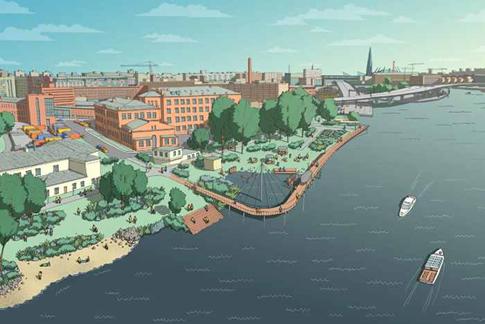 На участке набережной Макарова предлагают разбить парк — с пешеходным мостом, пляжем и фудтраками