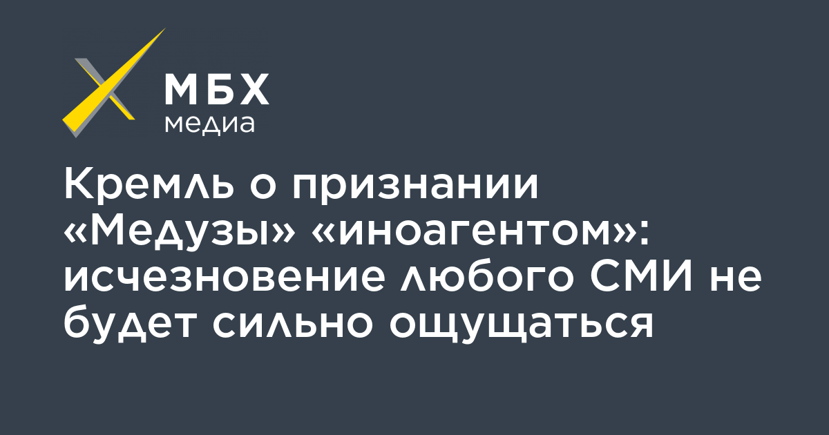 Кремль о признании «Медузы» «иноагентом»: исчезновение любого СМИ не будет сильно ощущаться