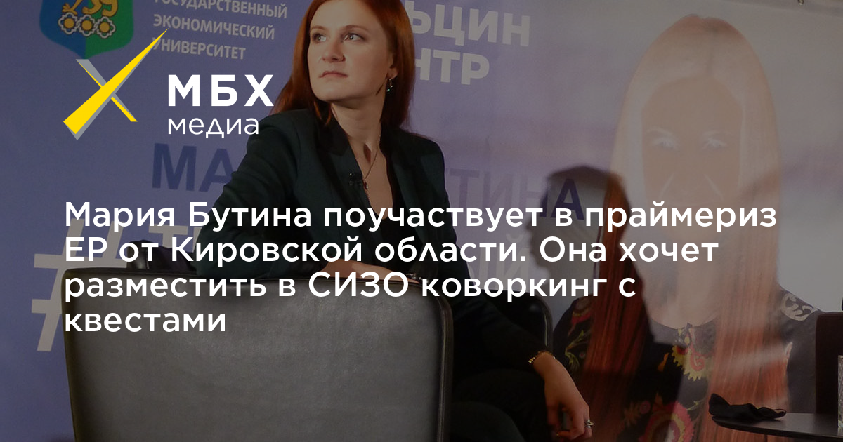 Мария Бутина поучаствует в праймериз ЕР от Кировской области. Она хочет разместить в СИЗО коворкинг с квестами