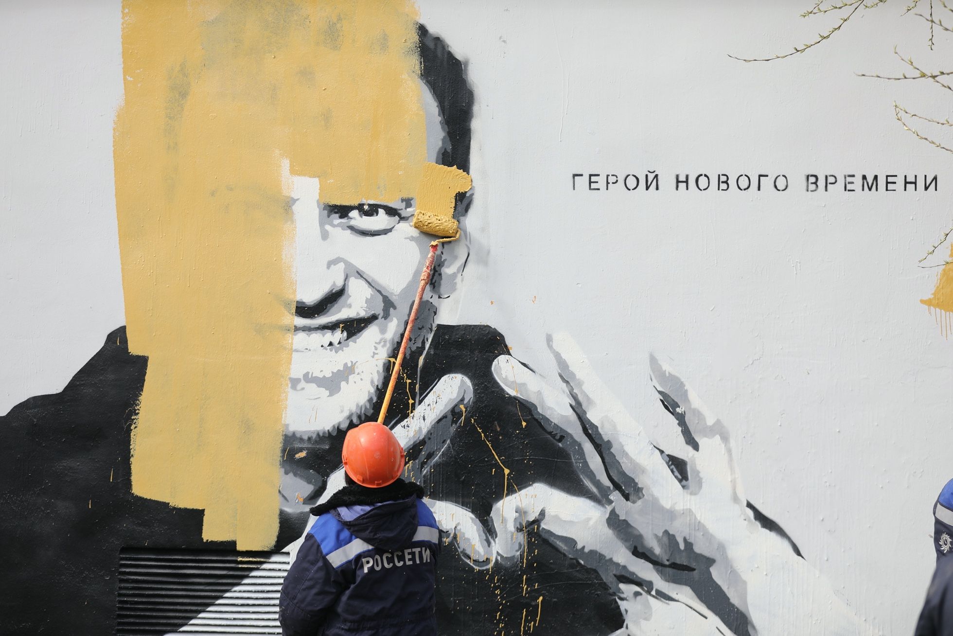 Alexey Navalny graffiti mural in St. Petersburg painted over after just four hours