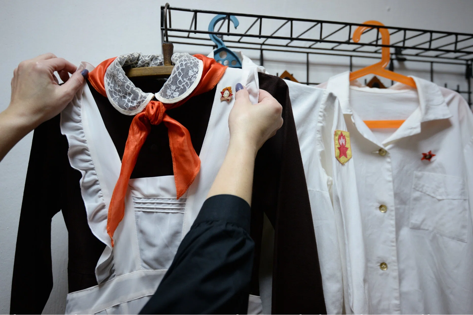 А я вспоминаю коричневое платье из мерзкой кусачей ткани, которое мама разрезала вдоль, для удобства превращая его, платье, в подобие халата, а застежку еще более ненавистного фартука снабжала резиночкой — без нее не сходился. Ничего красивого и тем более комфортного в советской школьной форме я до сих пор не вижу, и стоны по поводу ее аккуратности и эстетичности отсылаю на счет неудовлетворенных фантазий. В секс-шоп, товарищи, в секс-шоп!