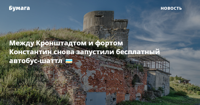 Между Кронштадтом и фортом Константин запустили бесплатный автобус-шаттл, сообщили «Бумаге» в компании-перевозчике АО «Третий парк». Автобусы начали курсировать по маршруту 26 апреля.