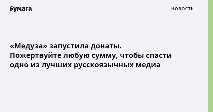 Помочь «Медузе» можно здесь, оформив платеж на любую сумму. Сейчас это одна из немногих возможностей спасти издание.