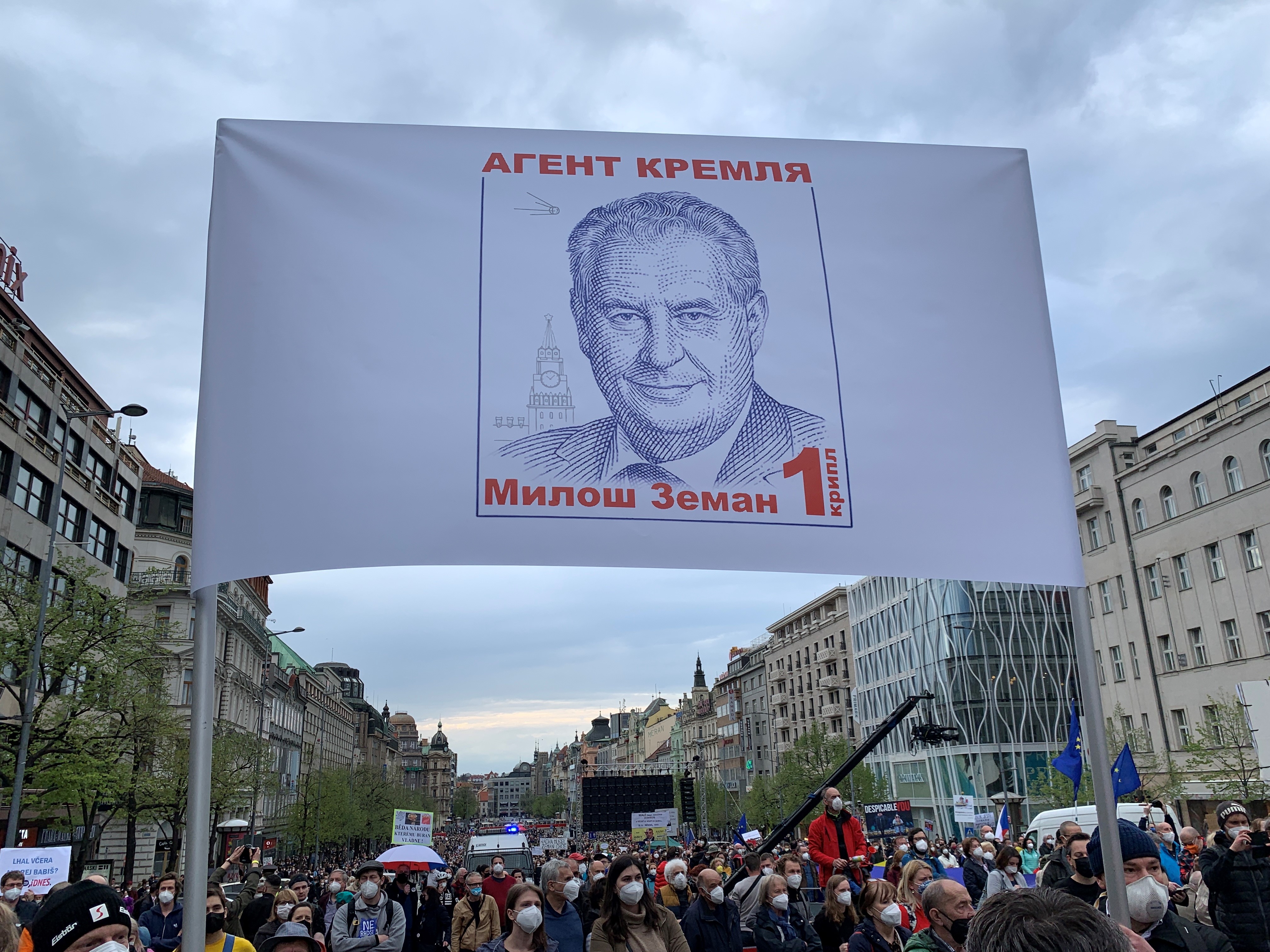 На Вацлавской площади в Праге собрались, по оценкам полиции, около 10 тысяч человек, организаторы говорят о 20 тысячах.