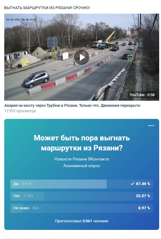 Маршрутки должны покинуть Рязань! Но при этом я за то, что в Рязани была сильная муниципальная власть. И вот сейчас складывается ситуация, когда у администрации города госкорпорация ВЭБ может отнять часть функций, но при этом выстроит систему удобного и комфортного общественного транспорта. Что выбрать из этого?