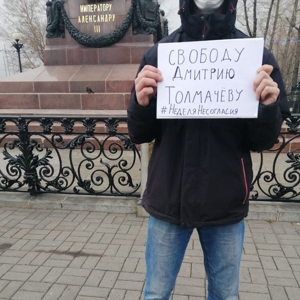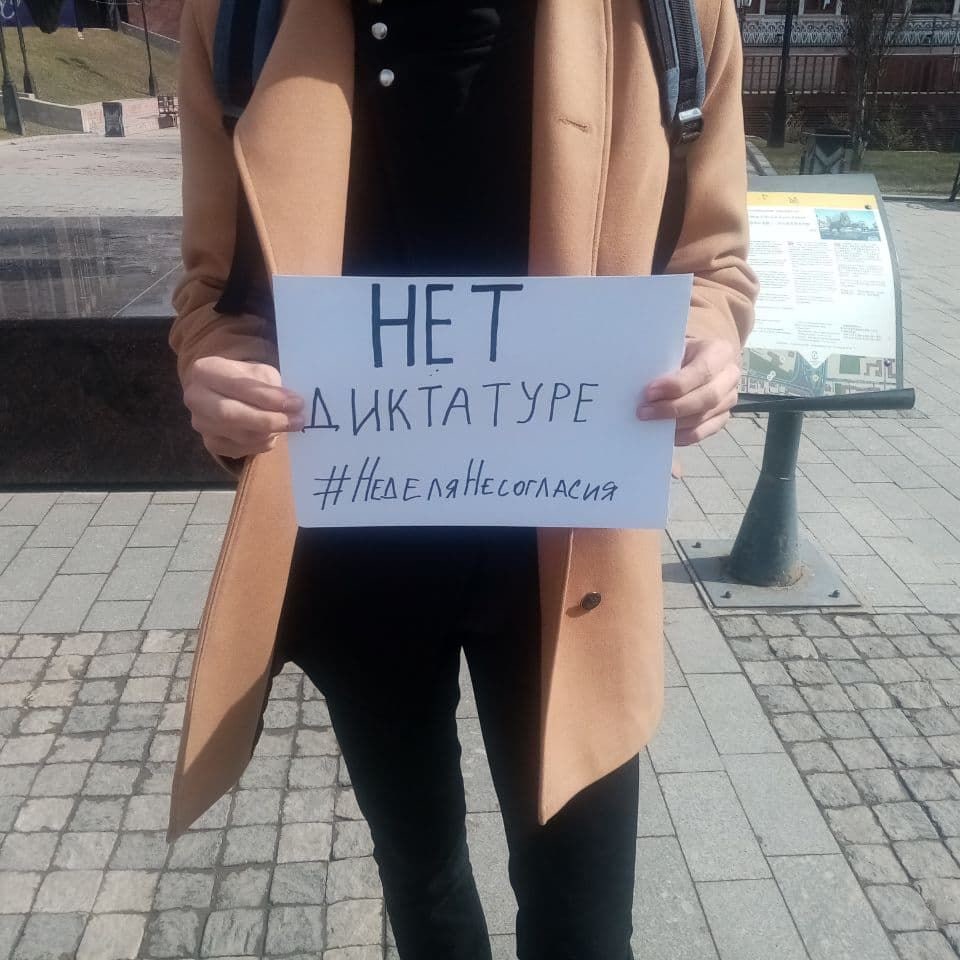 Эту неделю жители Иркутска объявили "неделей несогласия" – до 1 мая включительно они каждый день выходят на одиночные пикеты в поддержку политических заключенных, в том числе арестованных после акции 21 апреля.