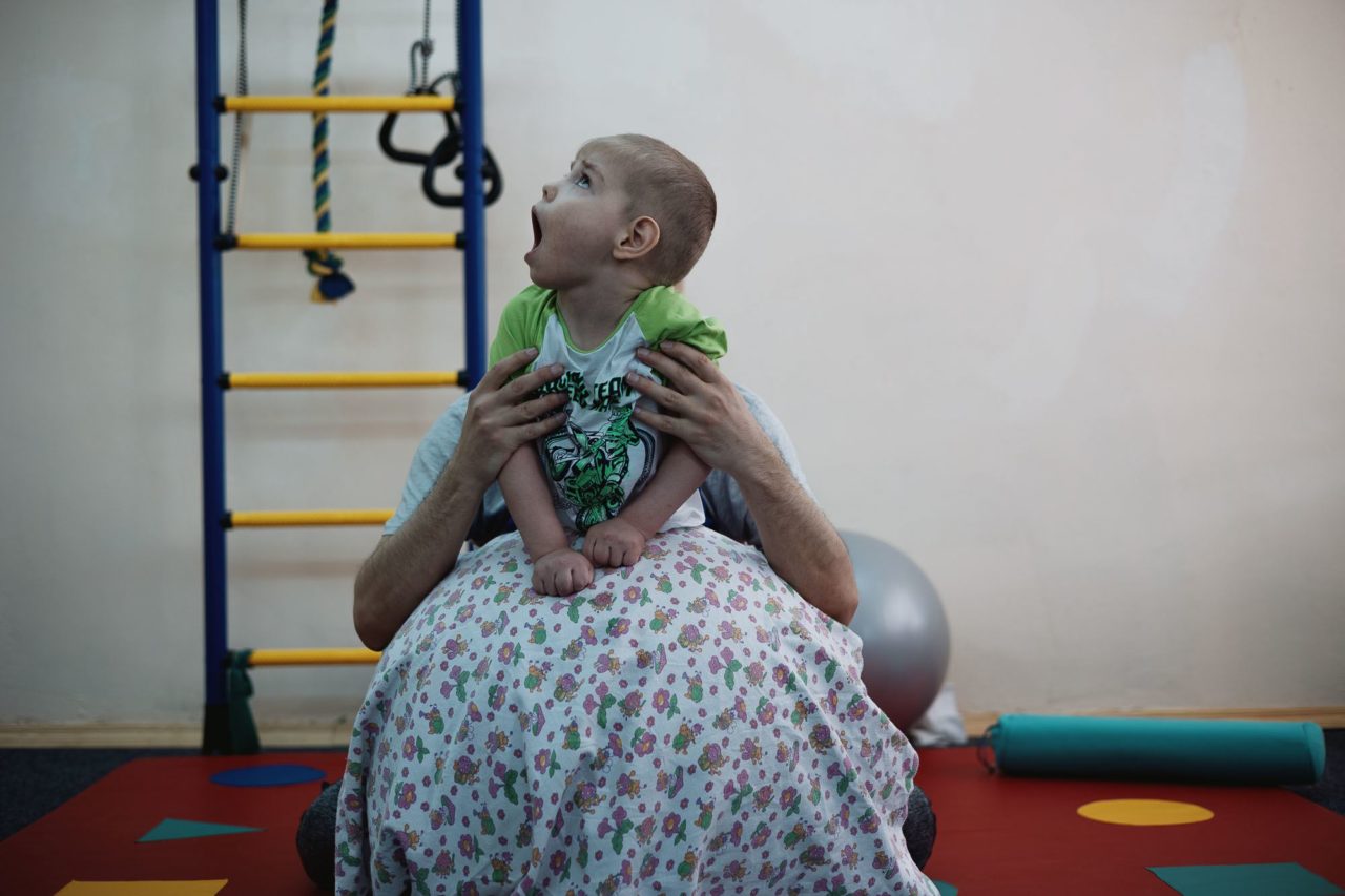 Благодаря занятиям и процедурам в два года Вадик начал держать голову. Но из-за бронхита попал в больницу и там опять утратил эту способность. Все еще запрокидывает голову назад или свешивает набок. Таня постоянно напоминает ему: «Вадик, голову!» — и сын старается держать ее ровнее. В инвалидном кресле это удается, а без него — пока никак.